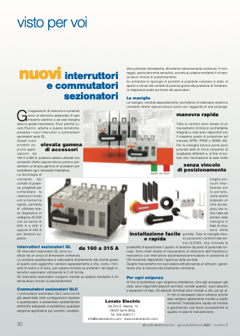 dare la giusta importanza. Ecco perché Lo- vato Electric, attenta a queste tematiche, presenta i nuovi interruttori e commutatori sezionatori serie GL.