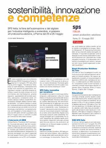 Il programma Educational della manifestazione coinvolge università, aziende, studenti, profes- sori e istituti tecnici prima, durante e dopo la fie- ra. Tra le nuove iniziative la possibilità, per gli studenti di ITIS e ITS che ne faranno richiesta, di assistere agli incontri “SPS Italia on Tour” tra- mite live streaming. Con Ministero dell’Istruzio- ne, aziende e attori della filiera più sensibili ri- spetto alla formazione delle risorse per il mani- fatturiero, SPS Italia si impegna a redigere un Manifesto delle Competenze volto a definire le skills per entrare nel mondo del lavoro.