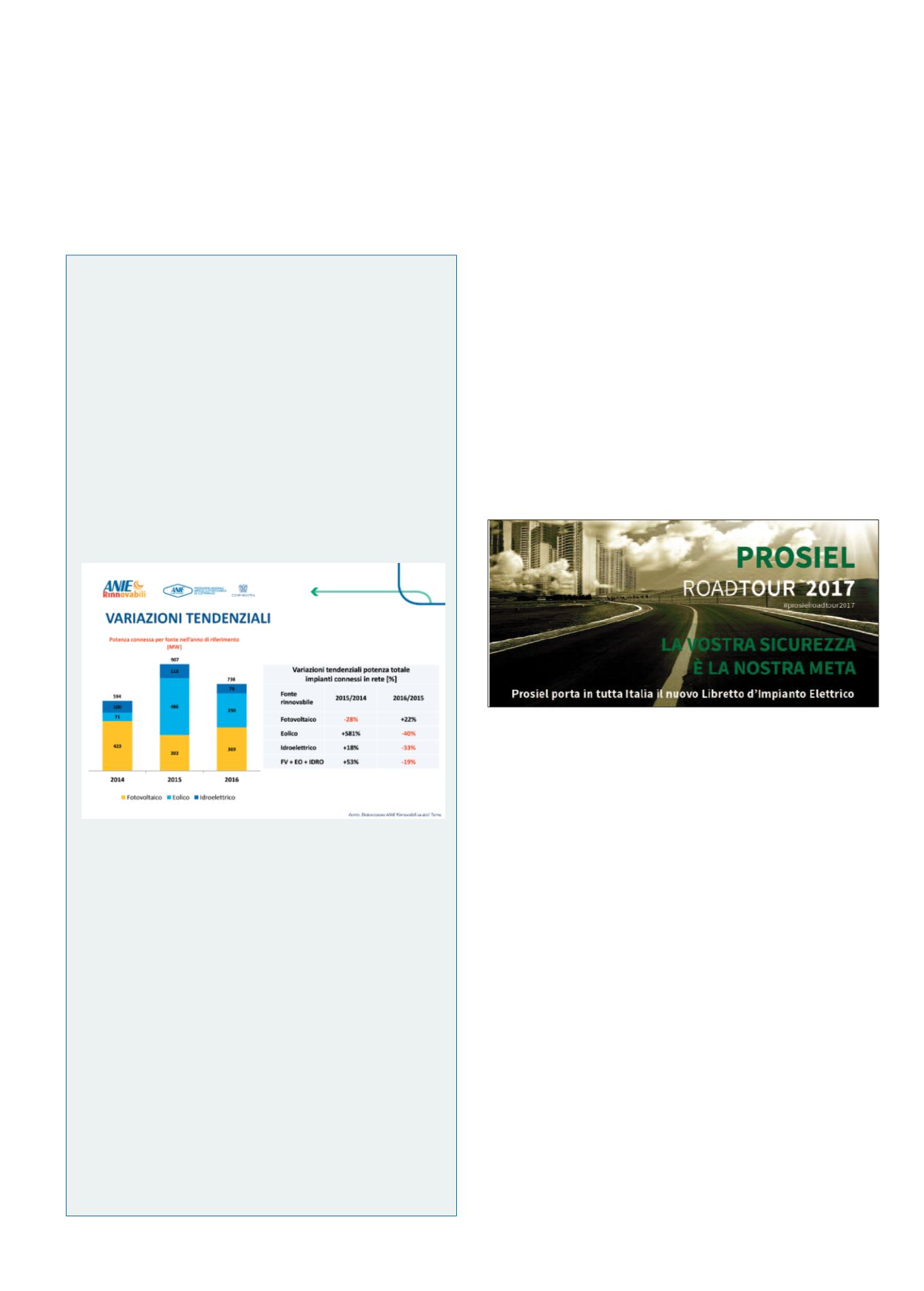 MW, registrando un aumento del 22% rispetto al 2015. Si registra un aumen-