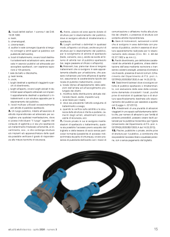 3. Un luogo pubblico, indetto all’esercizio di attività imprenditoriale ed attrezzato per ac- cogliere una qualsiasi manifestazione, dove si possa individuare “il luogo” oggetto del collaudo di agibilità e ci sia uno spettacolo e/o trattenimento finalizzato all’amenità, al di- vertimento, ecc., e che contenga strutture e/o impianti e/o apparecchiature delle quali sia possibile verificare il grado di risponden- za alle misure tecniche di sicurezza.