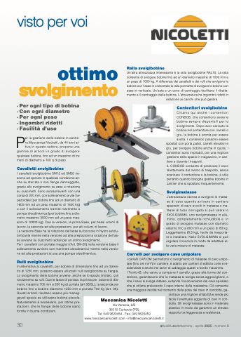 Per la gestione delle bobine in cantie- re Meccanica Nicoletti, da 44 anni at- tiva in questo settore, propone una