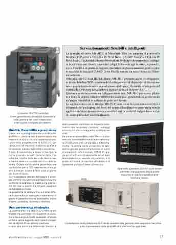 La famiglia di servo MR-JE-C di Mitsubishi Electric supporta il protocollo Modbus TCP, oltre a CC-Link IE Field Basic e SLMP. Grazie a CC-Link IE Field Basic, l’Industrial Ethernet Network da 100Mbps che permette di collega- re in un’unica rete diversi dispositivi (dagli I/O remoti agli inverter, ai pannelli, ecc.), l’utente è in grado di eseguire operazioni di posizionamento punto a pun- to secondo lo standard CiA402 Drive Profile tramite un unico industrial Ether- net network.