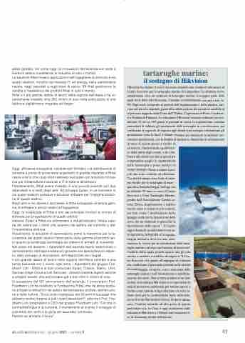mazione le vasche per la stabulazione delle tarta- rughe marine e un’area con funzione di museo nel- l’ambito della quale prende spazio una piccola mostra a carattere scientifico-divulgativo. Il Cen- tro Soccorso vive grazie all’impegno di volontari che coadiuvano il personale presente nelle attività di monitoraggio, recupero, cura e marcatura delle tartarughe marine e nell’informazione e sensibiliz- zazione dei turisti. Non si tratta peraltro di un fatto isolato: la tecnologia Hikvision si occupa infatti da anni di protezione ambientale per tutelare specie a rischio come i panda, le tigri siberiane e le oche in- diane (note per le caratteristiche barre sulla testa, da cui il nome Bar-headed Goose). In quest’ultimo caso, l’habitat naturale ad alta quota di questa particolare oca, in Cina, è oggi monitorato dalle telecamere Hikvision e i filmati sono trasmessi li- ve in streaming ad alta definizione.