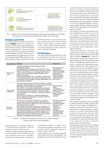 I driver di tipo economico, come ovvio, sono potenti fattori di attrazione; le evidenze degli ultimi anni parlano decisamente a favore degli edifici sostenibili (Tabella 2). I locatari ad esempio sono naturalmente orientati verso i green building, poiché i costi di esercizio sono inferiori e la qualità degli ambienti interni è su- periore. In genere ogni miglioramento presta- zionale dell’edificio dà valore aggiuntivo e la riduzione nei consumi di energia e acqua è particolarmente apprezzata; il monitoraggio in real time di queste grandezze permette inoltre di rilevare tempestivamente guasti e malfun- zionamenti e offre progressi dal punto di vista manutentivo e di continuità di esercizio.