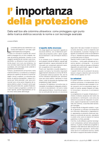 Tuttavia, parallelamente all’aumento della mobilità elettrica, si evidenzia un bisogno sempre più urgente di strutture di ricarica af- fidabili, sicure e resilienti. Le colonnine pub- bliche, le wall box domestiche, i sistemi di ri- carica per flotte aziendali o per aree com- merciali sono ormai parte integrante del si- stema elettrico urbano. E proprio come qual- siasi altra parte della rete, queste infrastruttu- re devono essere progettate e protette con criteri rigorosi, perché rappresentano un no- do critico nella catena dell’energia.