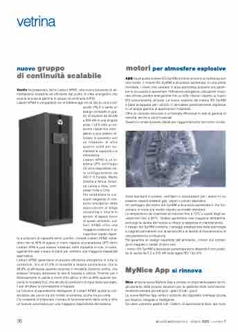 quelle VRLA e vanta un design compatto in gra- do di scalare da 30 kW a 600 kW in una singola unità. L’UPS offre un no- tevole risparmio ener- getico e può essere uti- lizzato in parallelo con un massimo di altre quattro unità per au- mentare le capacità o la ridondanza.