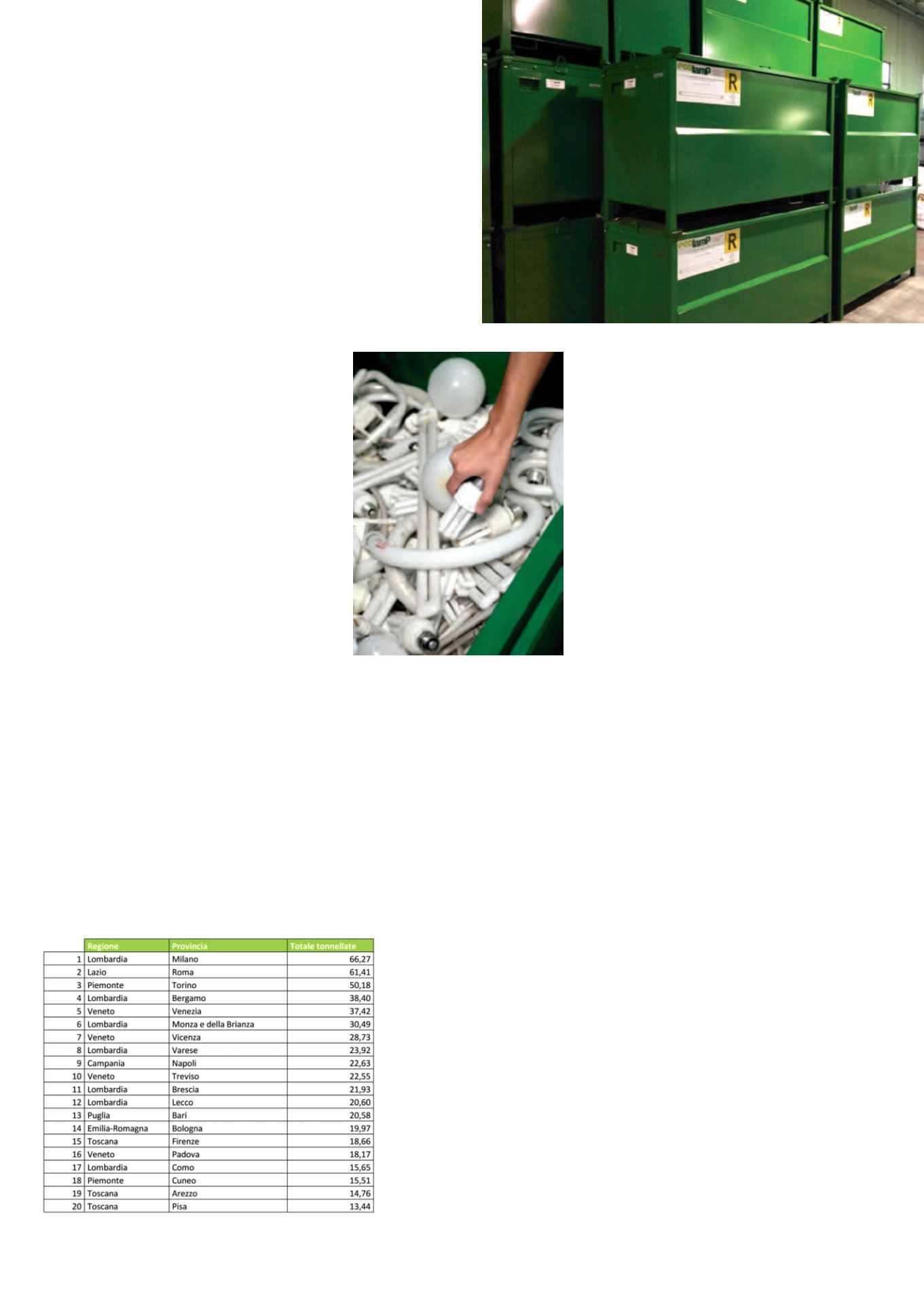 2,5% della raccolta nazionale Ecolamp. Il pri-