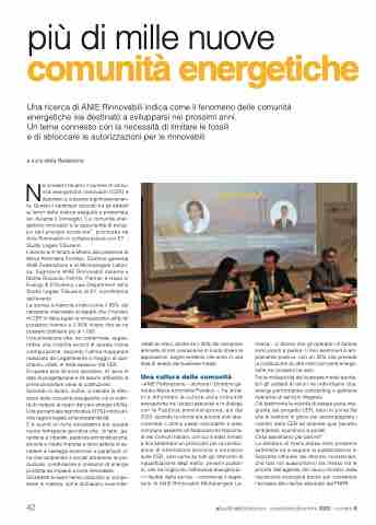 C’è quindi un forte entusiasmo per questa nuova fattispecie giuridica che, di fatto, ga- rantisce a cittadini, pubblica amministrazione, piccole e medie imprese e terzo settore di ac- cedere a vantaggi economici e parafiscali ol- tre che ambientali e sociali attraverso la pro- duzione, condivisione e consumo di energia prodotta da impianti a fonte rinnovabile.