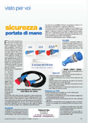 ai rischi di folgorazione. Il salvavita Rotor, progettato e realizzato da Palazzoli, disponibile da qualche anno sui mercati europei, allarga il suo raggio d’azione: dopo un lun- go iter burocratico, ora è brevettato in Italia, negli USA, in Russia, in Ci- na e in Giappone. Se il salvavita nelle abitazioni private è ormai dif- fuso, mancava uno strumento per garantire la sicurezza alle prese volanti, come nel cantieri edili o in manifestazioni sportive e di spetta- colo, per impedire il contatto con gli alveoli in tensione.